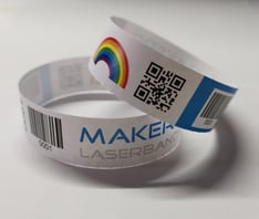 As the name suggests, Laser printable wristbands are wristbands which can be printed through a laser printer. The sheets are smaller than A4 and fit into a multi-purpose tray so you only need a small A4 desktop printer. Laser wristbands are also known as paper wristbands as they are made from synthetic paper. You can print as little as one sheet at a time. Easy peasy